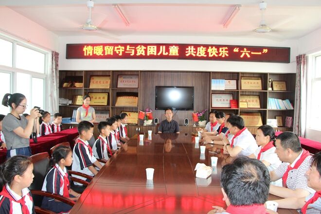 來(lái)到會(huì)議室,酉華中心小學(xué)李義清校長(zhǎng)首先就學(xué)校貧困家庭兒童情況向領(lǐng)導(dǎo)們作了匯報(bào);接著,8位受助學(xué)生代表以他們自己的方式——給領(lǐng)導(dǎo)佩戴紅領(lǐng)巾來(lái)表達(dá)對(duì)領(lǐng)導(dǎo)們的感謝和尊敬。502 班劉盼同學(xué)代表受助學(xué)生發(fā)言,表達(dá)了樂(lè)觀進(jìn)取,積極向上,感恩社會(huì)的拳拳之情。