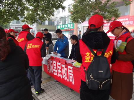 活動現(xiàn)場,志愿服務(wù)人員向過往群眾發(fā)放民生工程宣傳畫、工作指南材料,耐心解答群眾提出的問題,面對面地宣傳民政各項惠民政策,為現(xiàn)場群眾提供社會救助、養(yǎng)老服務(wù)、社會事務(wù)、社會組織登記管理等方面的法律咨詢志愿服務(wù),發(fā)放資料百余份。通過宣傳,使群眾進一步加深了對民政各項政策法規(guī)的了解,增強了全民法治意識,提高了民政干部職工依法行政的自覺性,營造了“民政愛民、民政為民”的良好工作氛圍。