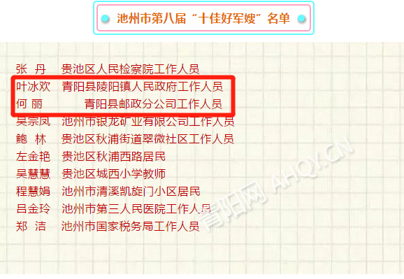 為大力弘揚愛國擁軍的優(yōu)良傳統(tǒng),激勵全市廣大軍嫂和兵媽媽積極支持軍隊和國防建設(shè),支持親人安心服役,展示她們立足本職崗位、愛國擁軍、積極奉獻的良好風(fēng)貌,市婦聯(lián)、池州軍分區(qū)政治工作處、市雙擁辦共同開展了池州市第八屆“十佳好軍嫂”暨第二屆“十佳兵媽媽”評選表彰活動。