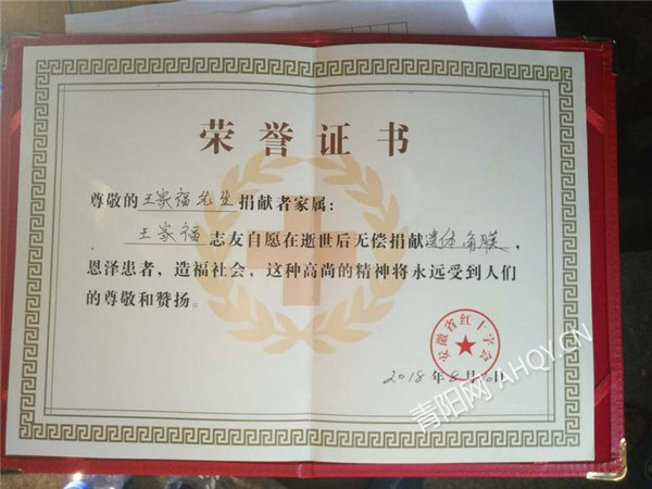 青陽(yáng)新河鎮(zhèn)73歲老人意外身故志愿遺體捐獻(xiàn)