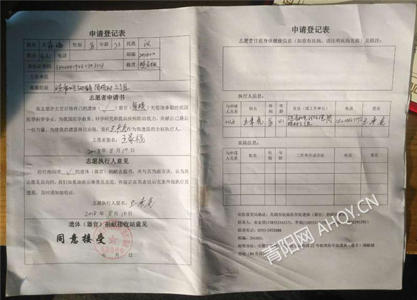 七十歲的老人捐獻(xiàn)遺體,在青陽(yáng)紅十字會(huì)、三獻(xiàn)志愿者協(xié)會(huì)是第一例。而且子女的支持度也是令人很欽佩的。