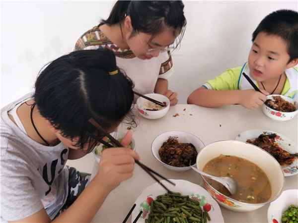 收養(yǎng)并培養(yǎng)的第一個大學生暑假回家和弟妹快樂地在一起別吃邊聊