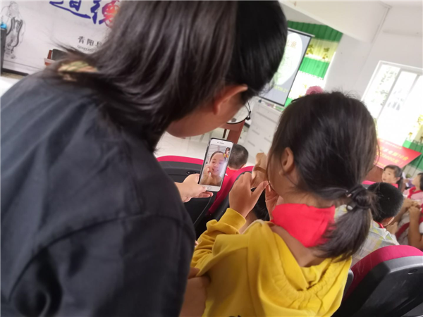此外,代理家長和留守兒童與留守兒童父母通話或視頻聊天,送上節(jié)日問候和祝福。