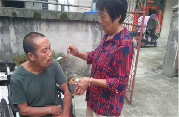 這樣的生活張玉鳳從未對丈夫有半句怨言和嫌棄,鄰里鄉(xiāng)親都說,施小牛要不是他妻子張玉鳳照料的好,他早就死了。張玉鳳現(xiàn)在最擔心的就是自己的年紀越來越大了,子女為了生活在外打工,也不在家里,萬一有天自己有個三長兩短,沒人會像她一樣盡心照顧自己的丈夫,所以現(xiàn)在的每一天張玉鳳都格外珍惜,用一顆堅強和充滿愛的心為她的丈夫和這個家堅守到底。(廟前鎮(zhèn))