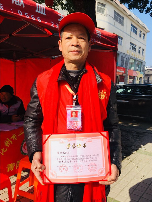 近日,老山治超站曹本義同志榮獲“2018年度池州市紅十字會、池州市三獻(xiàn)志愿者協(xié)會優(yōu)秀志愿者稱號”。