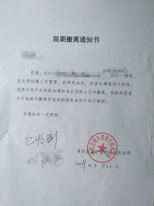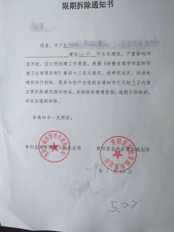 5月22日,縣城管局按照法定程序前期立案調(diào)查工作之后,聯(lián)合規(guī)劃部門向沿街28間違建商鋪戶主送達(dá)了《限期拆除通知書》;向沿街違建商鋪?zhàn)鈶羲瓦_(dá)了《限期搬離通知書》。依法告知了違建拆除事項(xiàng)。經(jīng)過執(zhí)法隊(duì)員多次上門走訪、宣傳勸導(dǎo),做通思想工作,爭取到多數(shù)人的理解與支持。