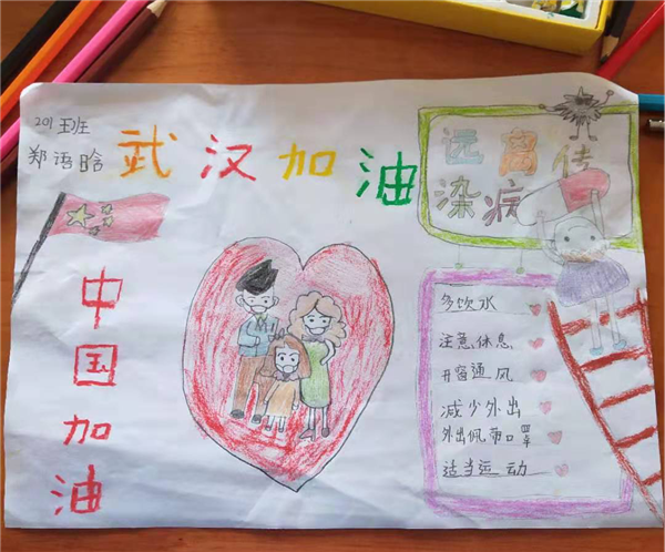 中心小學(xué)團支部團員老師,假期利用微信群統(tǒng)計學(xué)生健康狀況、加強疫情宣傳,動員學(xué)生勸導(dǎo)父母長輩做好自身防護,積極配合政府疫情防控工作。春節(jié)期間,許多小學(xué)生還通過繪畫、抖音小視頻,為一線防疫人員加油!