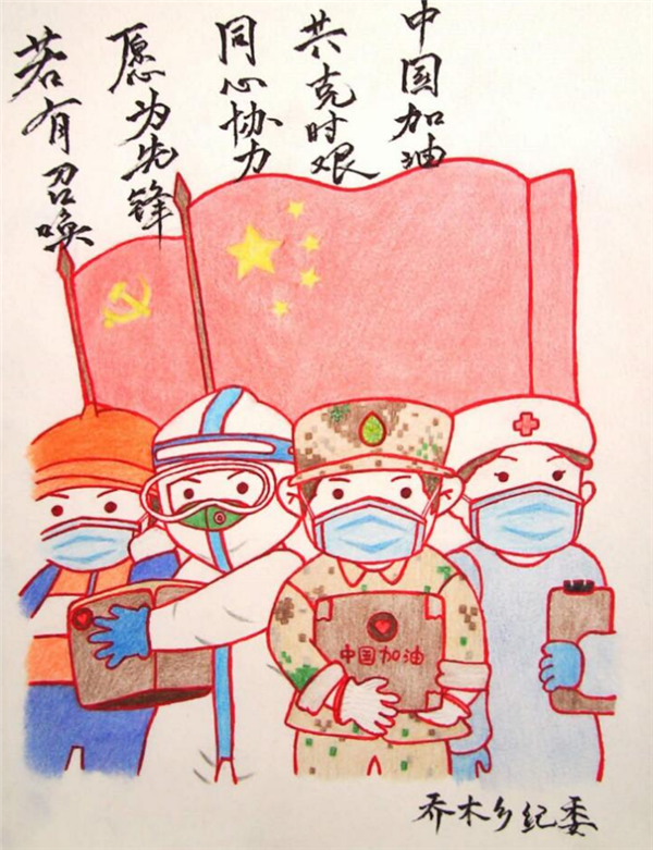 “每每看到孩子畫的抗擊疫情的作品,心中就會感到無名的溫暖,因為我不是一人在戰(zhàn)‘疫’。從正月初三開始,我就舍棄了陪伴家人的時間,每日奮戰(zhàn)在抗擊疫情一線,開展督查、落實相關(guān)任務(wù)等,年邁的母親每日起早摸晚與妻子一同照看年幼的兒女,正是他們的理解讓我們在前線沒有后顧之憂,他們的支持成了我們前行的最大動力?!鼻嚓柨h新河鎮(zhèn)紀(jì)委書記章蓓蓓說道。