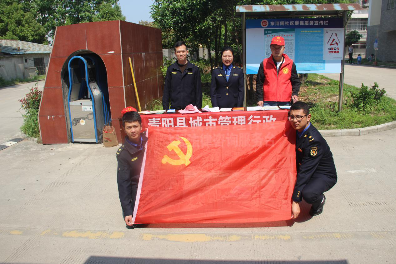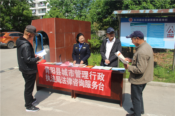 摒棄陋習,倡樹新風??h城管執(zhí)法局在伯益商貿(mào)城小區(qū)中開展了擯棄“十大不文明行為”公益宣傳活動。組織志愿者向伯益商貿(mào)城小區(qū)及周邊居民開展公益宣傳,并在城區(qū)樹立廣告牌,進一步增強市民文明意識,提高文明素質(zhì),積極投身建設“修身福地、靈秀青陽”。
