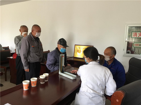 講座結(jié)束后工作人員為老人測量了血壓,并叮囑老人要學(xué)會關(guān)愛自己。