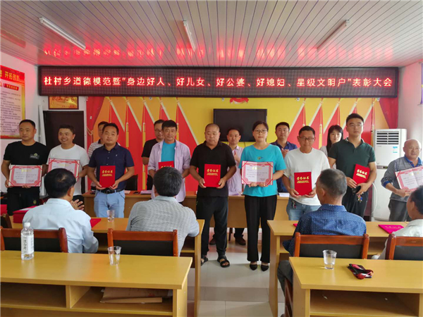 表彰活動(dòng)對(duì)全鄉(xiāng)對(duì)汪國勝等40戶個(gè)人或家庭授予2020年度杜村鄉(xiāng)“好兒女、好公婆、好媳婦、星級(jí)文明戶、身邊好人”榮譽(yù)稱號(hào),并頒發(fā)榮譽(yù)證書。本次表彰大會(huì)要求表彰對(duì)象珍惜榮譽(yù)、富而思進(jìn),積極主動(dòng)的成為精神文明的推動(dòng)者,大力弘揚(yáng)家庭美德,積極倡導(dǎo)文明、科學(xué)、 健康的生活方式,不斷提高家庭文明程度,為建設(shè)醉美杜村發(fā)揮余熱。