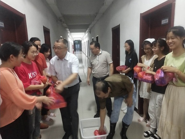 7月6日晚七時(shí)許,青陽中學(xué)校黨總支班子成員一行冒著大雨,帶著水果、餅干和牛奶,來到學(xué)生宿舍,慰問在校住宿的高三考生。