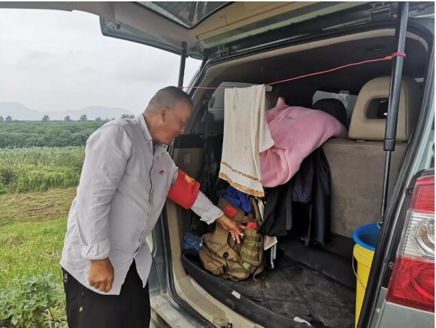(圖為詹琪準備好日常用品,準備駐守大堤)