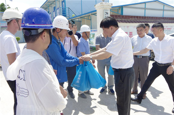 8月4日上午,青陽縣委書記紀(jì)良才帶隊開展“夏送清涼”活動,慰問在酷暑中堅守崗位、辛勤勞動的一線工人,為他們送去防暑降溫物品。縣委常委、政法委書記胡俊,縣委常委、縣委辦主任吳偉,縣委常委、副縣長方勇,縣人大副主任、縣總工會主席潘盛陪同。