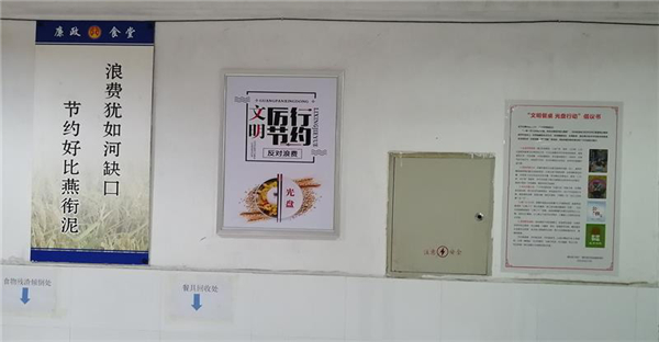 一是強(qiáng)化宣傳引導(dǎo)。院辦公大廳、食堂均在醒目位置張貼、懸掛節(jié)約用餐宣傳海報(bào),擺設(shè)提醒標(biāo)識(shí),強(qiáng)化“文明消費(fèi)、節(jié)約用餐”宣傳,營(yíng)造浪費(fèi)可恥、節(jié)約為榮的氛圍。