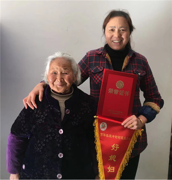 1月11日上午,宋沖村村委會(huì)和部分群眾代表來到外邊組吳小芳家,給吳小芳戶送上“好媳婦”的表彰,吳小芳拿著錦旗和證書激動(dòng)地說“這真是一份意外的驚喜,感謝村委會(huì)和各位代表對(duì)我的認(rèn)可。”