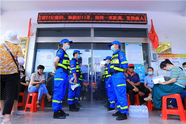 6月份以來(lái),新冠疫苗第二針劑接種達(dá)到了高峰期,在青陽(yáng)縣新河鎮(zhèn)接種點(diǎn),每天清晨六點(diǎn)多,村民們就開始絡(luò)繹不絕的前來(lái)等待接種。在熙熙攘攘的人群中,我們會(huì)看到穿梭于其中的有身著橙色馬甲、頭戴小紅帽的志愿者,有身披黑色義警服裝的藍(lán)天戰(zhàn)士,有身穿藍(lán)色制服的民輔警,有白衣天使、有政府干職,在人群的襯托下,他們就像一朵朵綻放在藍(lán)天白云之下的花朵,低調(diào)而絢爛。