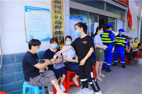 新河鎮(zhèn)、村新時(shí)代文明實(shí)踐站所的志愿者們也紛紛自發(fā)來(lái)到接種點(diǎn),只見他們分工有序,有的向村民發(fā)放免費(fèi)礦泉水、有的教導(dǎo)使用智能手機(jī)掃碼建檔,有的進(jìn)行交通勸導(dǎo)、有的現(xiàn)場(chǎng)指導(dǎo)皖事通注冊(cè)、有的協(xié)助做好登記造冊(cè)。