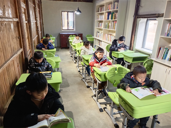 1月16日下午,天氣晴好,青陽縣杜村鄉(xiāng)宗文村的孩子們放寒假了。“放假啦!我們一起去新建的愛心書屋看書去吧”,六年級的張同學帶著家門口的小伙伴們,來到位于宗文村河灘中心村的愛心書屋看書、學習,其樂融融。