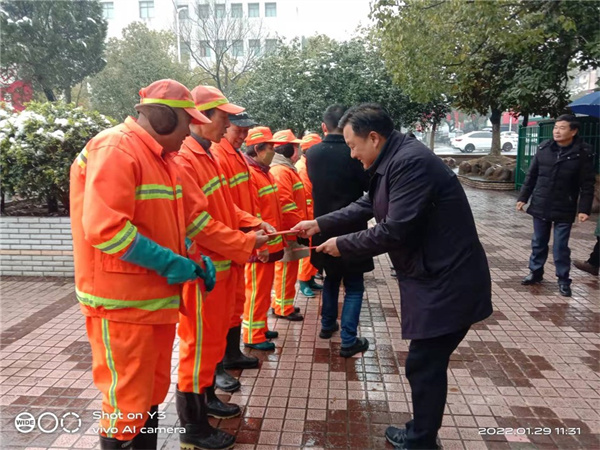 日前,縣委常委、宣傳部部長朱鳳英,副縣長疏勇一行看望慰問堅守在一線崗位的環(huán)衛(wèi)工人,向他們致以節(jié)日的問候,并送上春節(jié)慰問金。