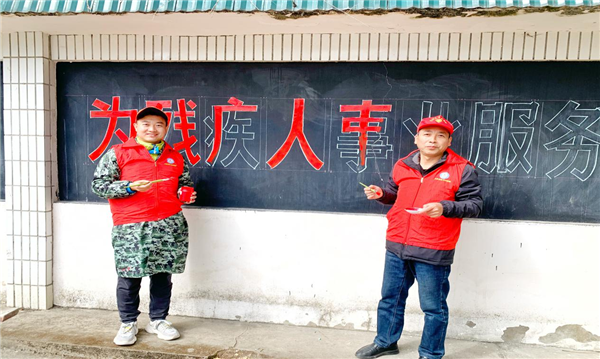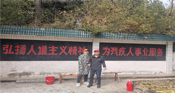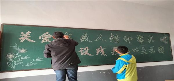 為進(jìn)一步營(yíng)造溫馨滿(mǎn)意的殘疾人工作環(huán)境,青陽(yáng)三中第一黨支部組織黨員何建松、劉祥來(lái)來(lái)到青陽(yáng)縣蓉城鎮(zhèn)花好月圓服務(wù)中心書(shū)寫(xiě)宣傳標(biāo)語(yǔ)、出黑板報(bào)。
