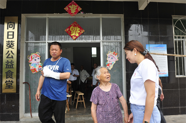 2021年4月份向日葵開始籌建“爸媽”公益食堂,身為站長,丁伯臣率先在杜村鄉(xiāng)成功建立新豐村和河?xùn)|村兩所公益食堂。施工期間,無論是跟村委會對接,施工現(xiàn)場安排,還是協(xié)助摸排留守老人、失能和半失能老人,以及和老人親屬簽訂服務(wù)合同等等,他都認(rèn)真對待、不辭辛苦。有一次施工現(xiàn)場,他在切割不銹鋼管的時候切到了左手虎口處,傷口很深,縫了五針,為了不耽誤工程進(jìn)度,他到醫(yī)院簡單包扎處理在醫(yī)生的一再叮囑下僅僅休息兩天后又繼續(xù)堅守施工現(xiàn)場忙碌起來,直到公益食堂正式運(yùn)營。