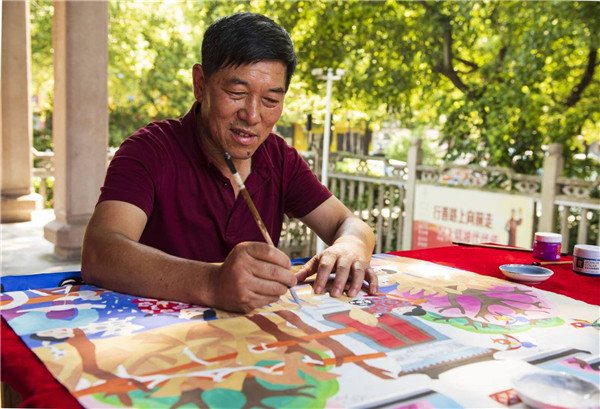 沈揚林老師農民畫創(chuàng)作中