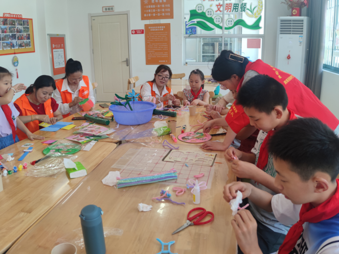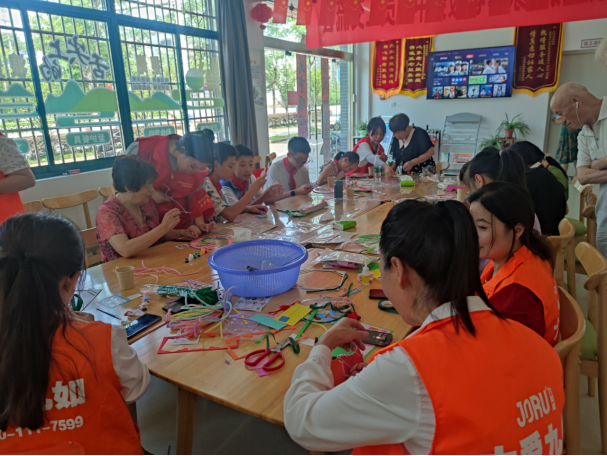 火紅七月,小小志愿者們和爺爺奶奶在九如城居家養(yǎng)老服務(wù)中心齊聚一堂,參觀了老年食堂(助餐點),了解了這是安徽省“十大暖民心”行動之一,以及我市助餐服務(wù)政策和老年食堂(助餐點)服務(wù)環(huán)境。隨后少先隊員們圍坐在一起,在志愿者的協(xié)助下,為老人們制作手工花、團扇等,并親自獻給參加活動的老人,把最真摯的祝福帶給他們,老人們連連夸贊,喜笑顏開,現(xiàn)場熱鬧非凡。